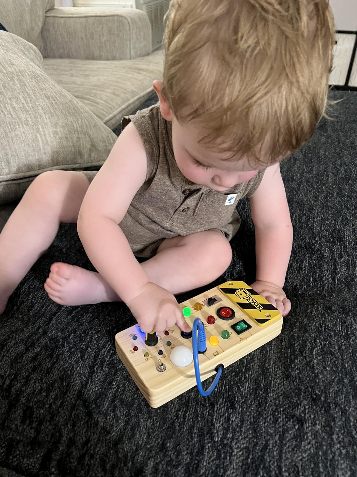 Your child learns by doing — turning knobs, flipping switches, and exploring lights at their own pace.